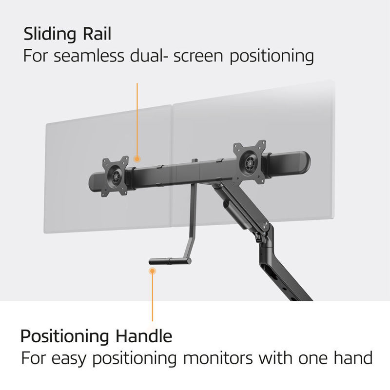 Ergonomski dvojni nosilec za monitorje ACT z jekleno konstrukcijo in plinsko vzmetjo omogoča enostavno nastavitev višine in optimalno postavitev dveh zaslonov do 32″ in 9 kg vsak. Odličen za sodobna delovna okolja, kjer sta udobje in prilagodljivost ključnega pomena.