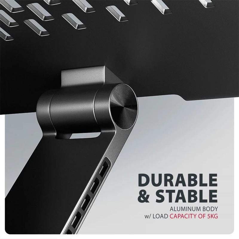 AXAGON STND-LRB je profesionalno zasnovano stojalo za prenosnik ali tablico, ki omogoča maksimalno prilagodljivost, udobje in izboljšano ergonomijo pri delu doma, v pisarni ali na poti. Primerno je za naprave z diagonalo zaslona od 10" do 17,3".