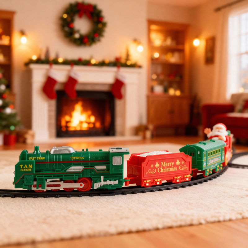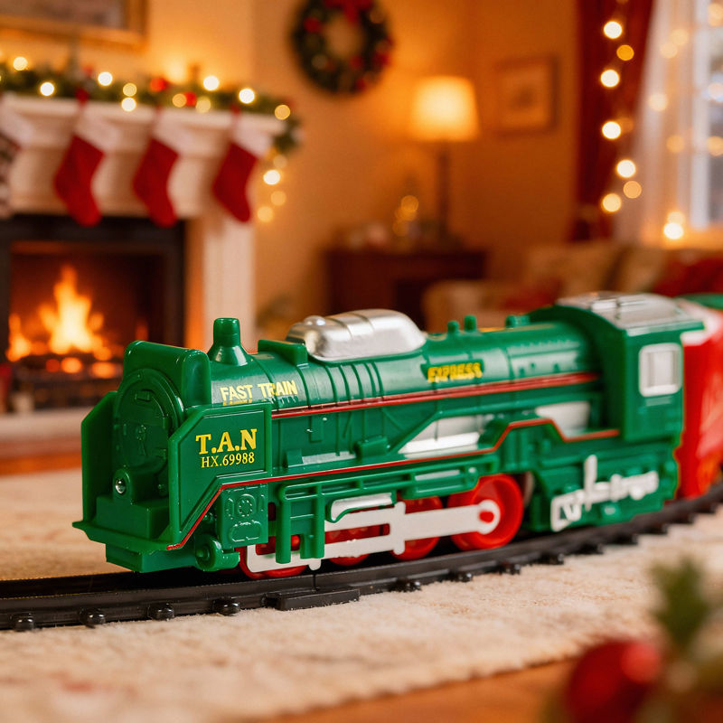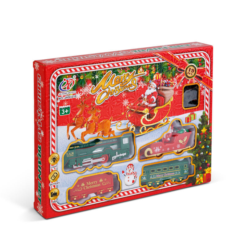 Pripeljite čarobnost praznikov v svoj dom z očarljivim božičnim vlakom z LED osvetlitvijo, ki bo navdušil tako otroke kot odrasle. Vlak se premika po priloženih 3 tirnih sekcijah, med vožnjo pa ga osvetljujejo LED lučke, ki ustvarjajo toplo in čarobno praznično atmosfero.