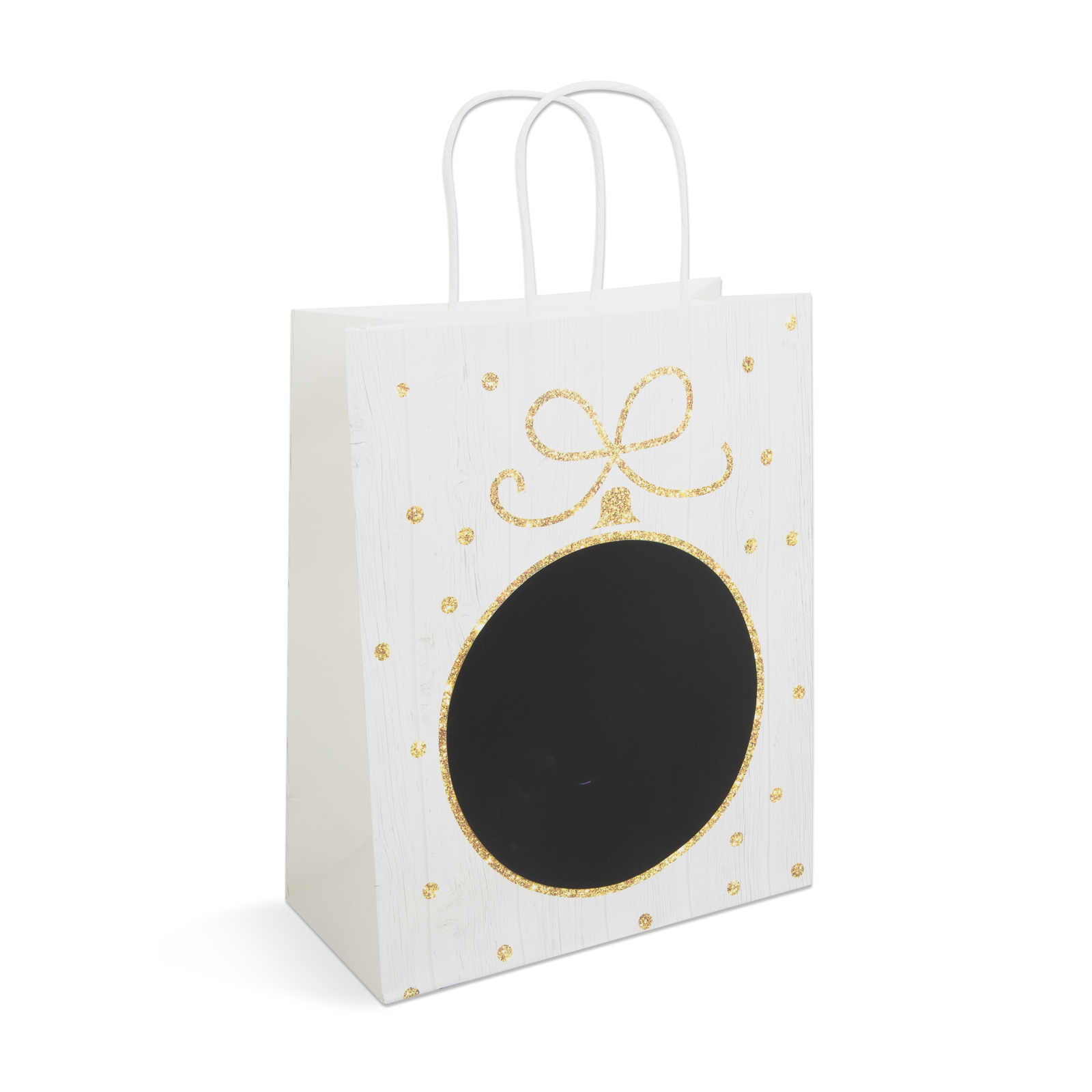 Če želite svoja darila zapakirati v stilu, je ta darilna vrečka popolna izbira. Posebna površina na strani vrečke daje prostor naši ustvarjalnosti, tako da lahko na stran vrečke napišemo ali narišemo unikatna sporočila in imena. Izdelan je iz visokokakovostnega, trpežnega papirja in je idealen za zavijanje vsakega darila. Zaradi velikosti in dizajna vrečke je primerna za pakiranje daril, bonbonov, igrač in drugih presenečenj. Darilna vrečka, enostavna za uporabo, je praktična in olajša proces zavijanja daril. Dekorativni, praznični videz darilne vrečke bo zagotovo osvojil srca vseh in dvignil praznično razpoloženje.