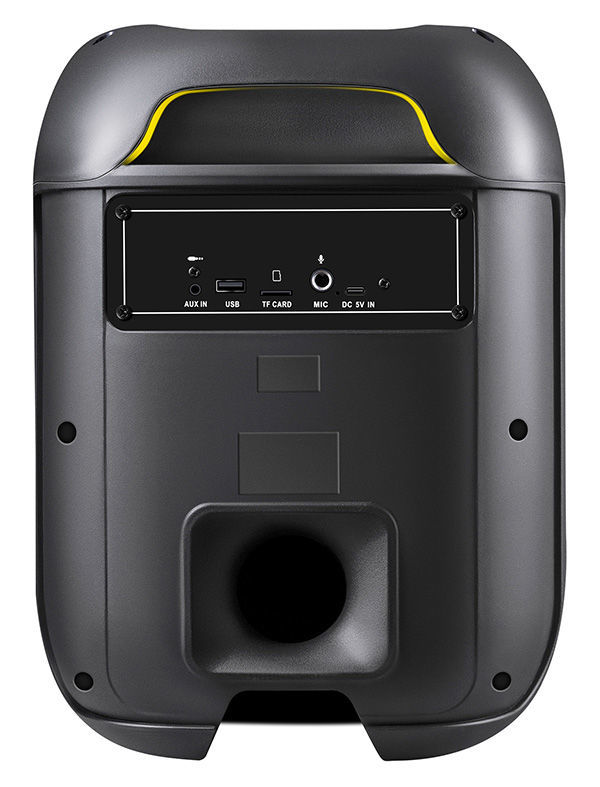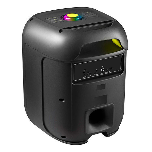 Karaoke funkcionalnost je omogočena z mikrofon vhodom in možnostjo nastavitve glasnosti in odmeva. Zvočnik ima tudi ergonomičen ročaj za prenosnost, gumirane noge, ki preprečujejo drsenje, in fazni pretvornik na zadnji strani za izboljšanje nizkih tonov. Primeren je za montažo na standardne zvočniške stojala (35 mm).