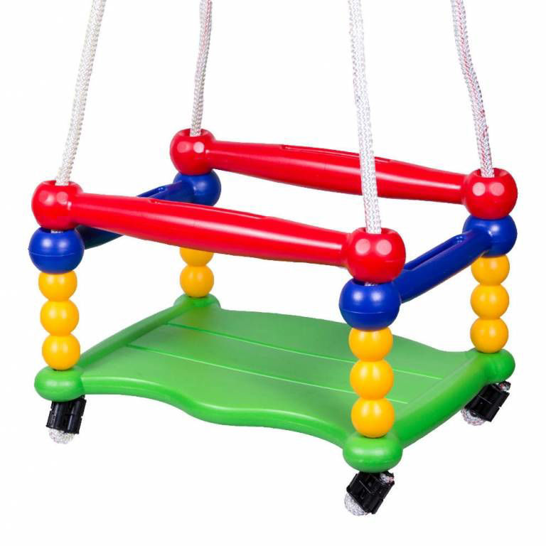 Barvita in varna plastična gugalnica z zaščitno ograjico je odlična izbira za otroke, stare od 3 do 4 let. Namenjena je tako uporabi v zaprtih prostorih kot na prostem. Trpežna konstrukcija, žive barve in stabilne vrvi omogočajo varno igro in zibanje. Vgrajena ograjica poskrbi za dodatno varnost najmlajših med guganjem, kar daje staršem še več miru.