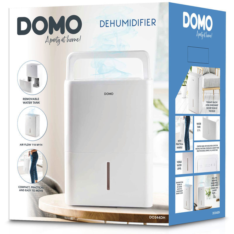 Domo DO344DH združuje kompaktno obliko, tiho delovanje in visoko učinkovitost, zato je popolna izbira za vsak dom. S samodejnim izklopom in nadzorom vlažnosti deluje popolnoma brezskrbno, hkrati pa poskrbi za bolj zdrav zrak in prijetno bivalno okolje.