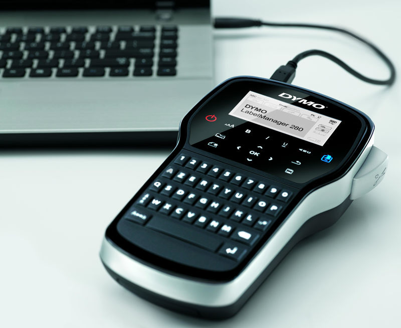 LabelManager ® 280 je z velikim grafičnim zaslonom, tipkami za hitro formatiranje in dolgotrajno polnilno baterijo vaša vstopnica za hitro in neprekinjeno označevanje. Tipkovnica v računalniškem slogu je popolna za hitro, udobno in enostavno tipkanje besedila. Poleg tega vam PC ali Mac ® *povezljivost omogoča prilagajanje nalepk s pisavami in grafiko po vaši izbiri iz vašega računalnika. LabelManager ® 280 tiska nalepke DYMO D1 v širinah 1/4 , 3/8 in 1/2 (6 mm, 9 mm, 12 mm) v različnih barvah “ kot nalašč za označevanje datotek, polic, opreme in več