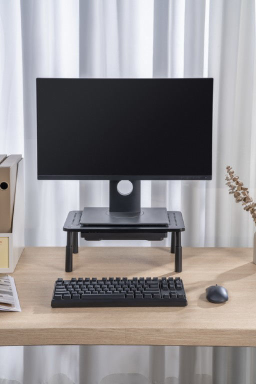 Stojalo ponuja tri različne višinske nastavitve (100, 120 ali 140 mm), kar omogoča prilagoditev idealne višine gledanja. Posebnost modela je vgrajen predal, ki omogoča priročno shranjevanje pisal, zapiskov, USB ključkov, spominskih kartic ali drugih manjših pripomočkov. Tako poskrbi za bolj organizirano in urejeno delovno mizo.