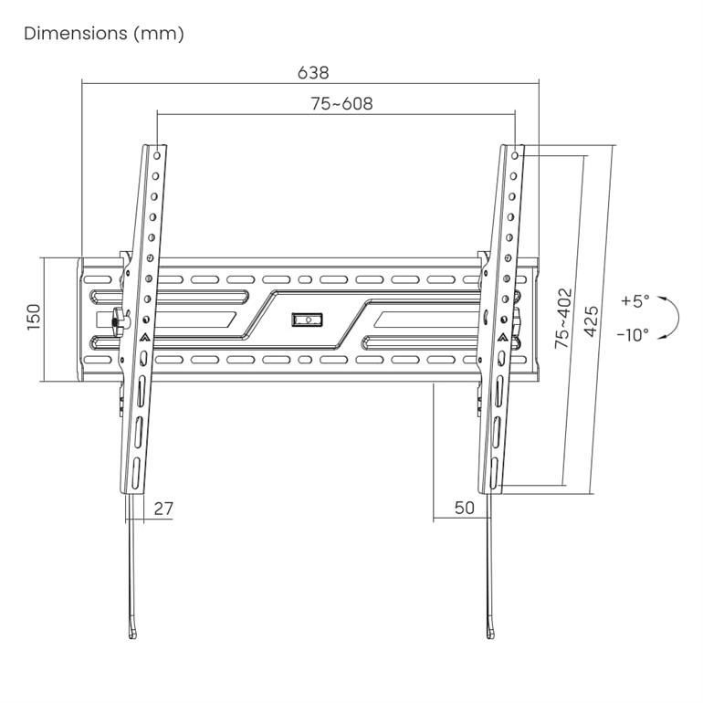 Nosilec omogoča nagib od +5° do -10°, kar pomaga zmanjšati bleščanje in izboljšati vidni kot, še posebej pri višje nameščenih televizorjih. Enostavno dostopni nastavitveni gumbi omogočajo hitro in preprosto prilagoditev nagiba.