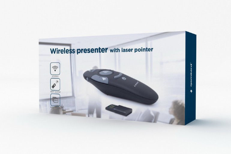 Brezžični daljinski upravljalnik za predstavitve v PowerPointuRdeči laserski kazalec za enostavno označevanje podrobnosti predstavitve občinstvu4 gumbi za upravljanje najpogosteje uporabljenih funkcij predstavitev v PowerPointu: naslednji/prejšnji diapozitiv, vklop/izklop zaslona, izhod/nadaljevanje predstavitve, vklop/izklop laserjaPraktično stikalo za vklopPriklopi in igraj, programska oprema ni potrebna