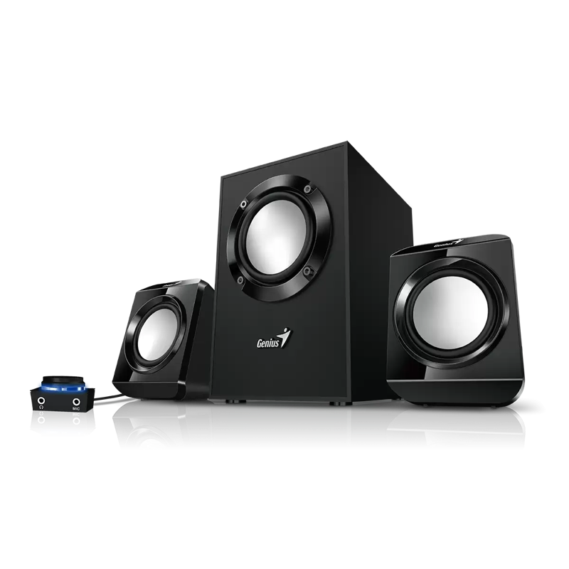Genius SW-2.1 300 II je zmogljiv 2.1 zvočni sistem, ki združuje dva satelita in subwoofer za uravnotežen, dinamičen zvok. S skupno močjo 10 W RMS zagotavlja bogat zvočni spekter – čiste visoke tone, uravnotežene srednje in izrazite nizke tone.