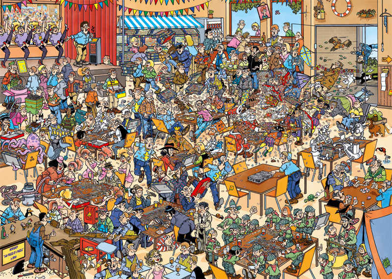 Sestavljanka Državno prvenstvo v sestavljanju sestavljank je popolna izbira za vse, ki uživate v humornih, barvitih in bogatih ilustracijah. Priljubljeni nizozemski ilustrator Jan van Haasteren vas tokrat popelje v dvorano, kjer tekmujejo najboljši sestavljavci puzzlov – toda kot vedno, gre marsikaj narobe! 🧠🧩😂