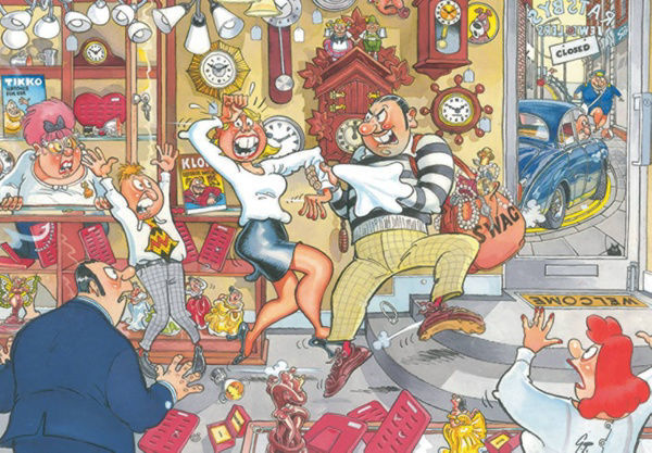 V seriji Wasgij Mystery se nič ne zgodi tako, kot pričakuješ! Pri sestavljanki Ustavi uro! (Stop the Clock!) na škatli vidimo pripravljenost na pomemben dogodek – morda praznovanje, slavnostno kosilo, tekmovanje ali razglasitev zmagovalca. Vse je na mestu… dokler se ne zgodi nekaj čisto nepričakovanega!