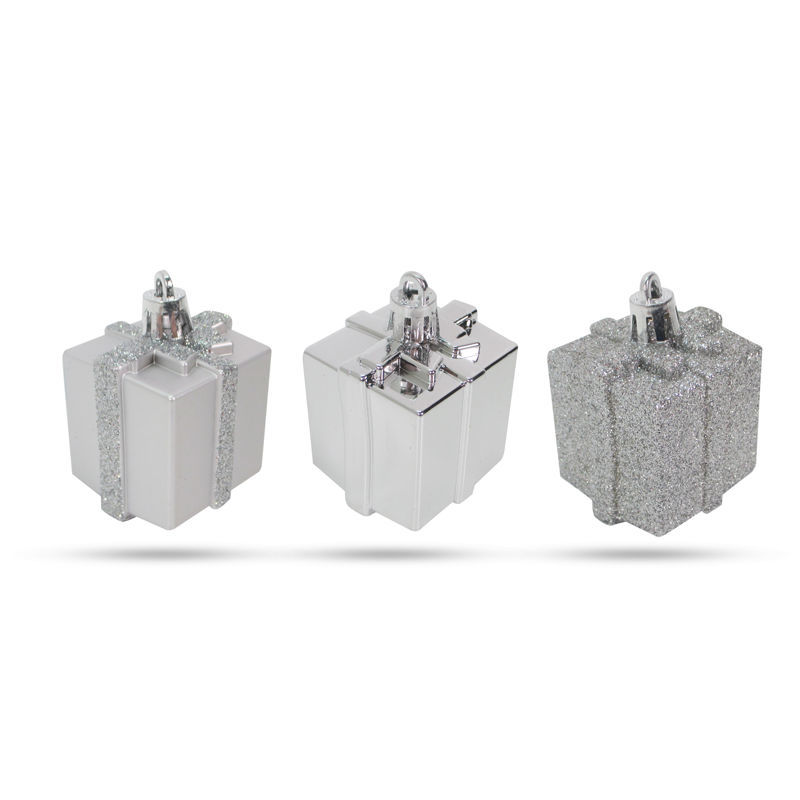 Komplet okraskov za božično drevo - srebrna darila (4,5 cm) - 6 kosov
