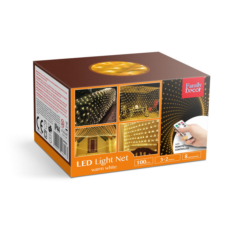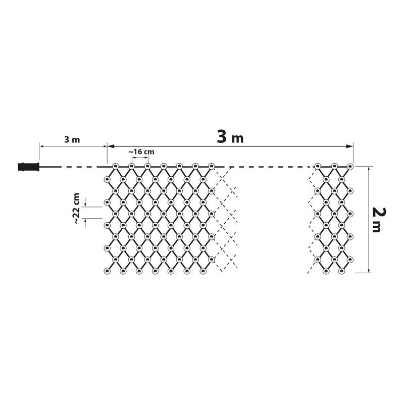 Polepšajte svoja okna, teraso ali balkon s čudovito LED svetlobno mrežo v toplo beli barvi! S kar 190 LED diodami, razporejenimi v enakomerno mrežo, ustvarja prijetno in elegantno svetlobo, ki bo vsak prostor napolnila s prazničnim vzdušjem. Zaradi zaščite IP44 je mreža primerna tudi za zunanjo uporabo, zato je popolna za okrasitev oken, fasad, pergol, filagorij in vrtov.