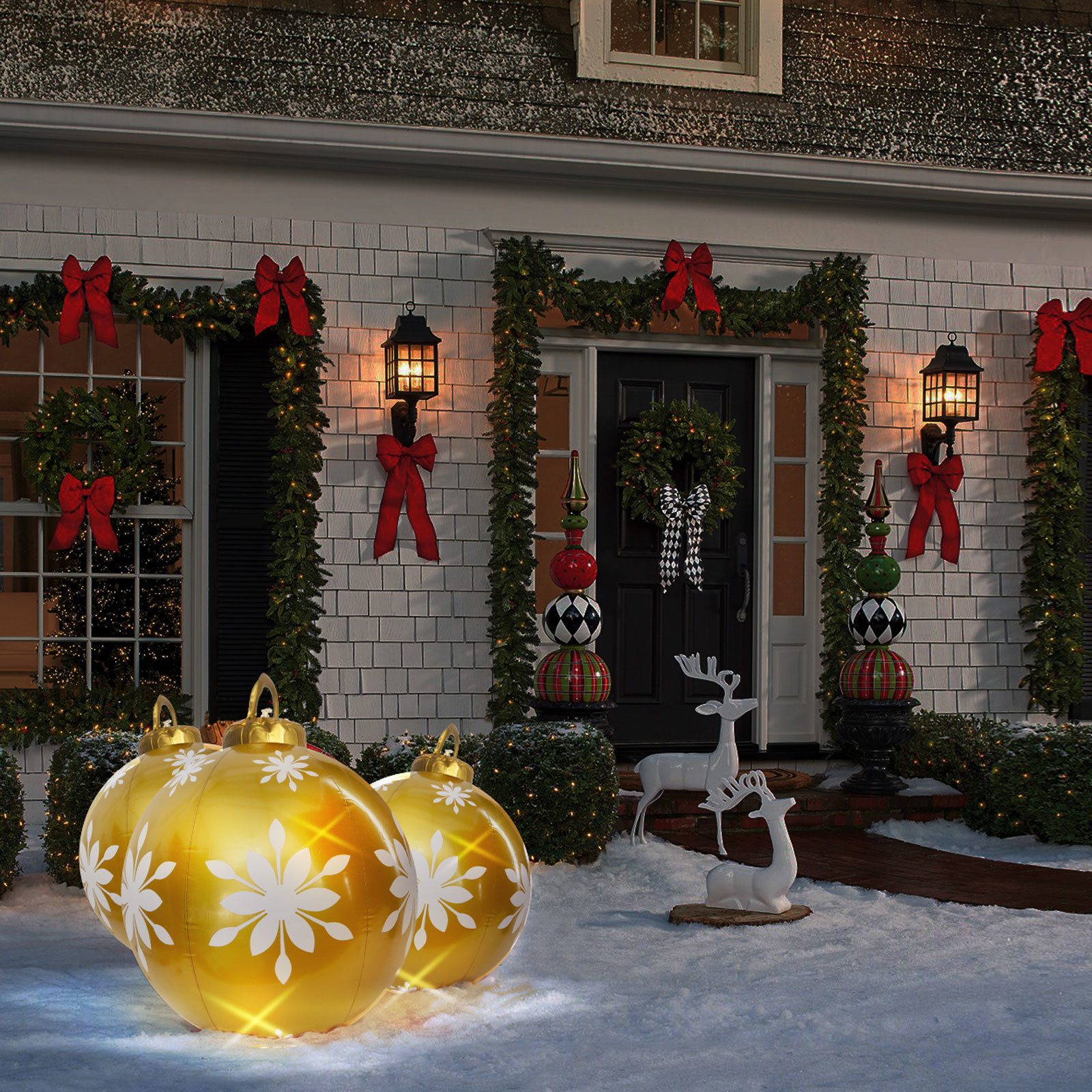 Najnovejše, inovativno okrasno orodje za božično obdobje je napihljiva, osvetljena okrasna krogla. Zaradi velike velikosti ga lahko postavite tudi v večje vrtove, obesite na drevo ali celo dobro izgleda na vodni površini bazena. LED enota, ki jo lahko namestite na dno okrasne krogle, osvetli notranjost krogle s čudovito svetlobo. LED diode napajajo 2 x CR2450 baterije. S priloženim daljinskim upravljalnikom lahko nastavite želeni način osvetlitve.