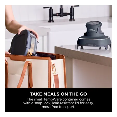 Ninja CRISPi FN101UKGY je inovativni prenosni air fryer 4-v-1, ki združuje zmogljivost klasičnega cvrtnika na vroč zrak v kompaktni in prenosni napravi. Zmogljiv 1700 W PowerPod grelni sistem omogoča hitro pripravo hrustljave hrane z minimalno količino olja.