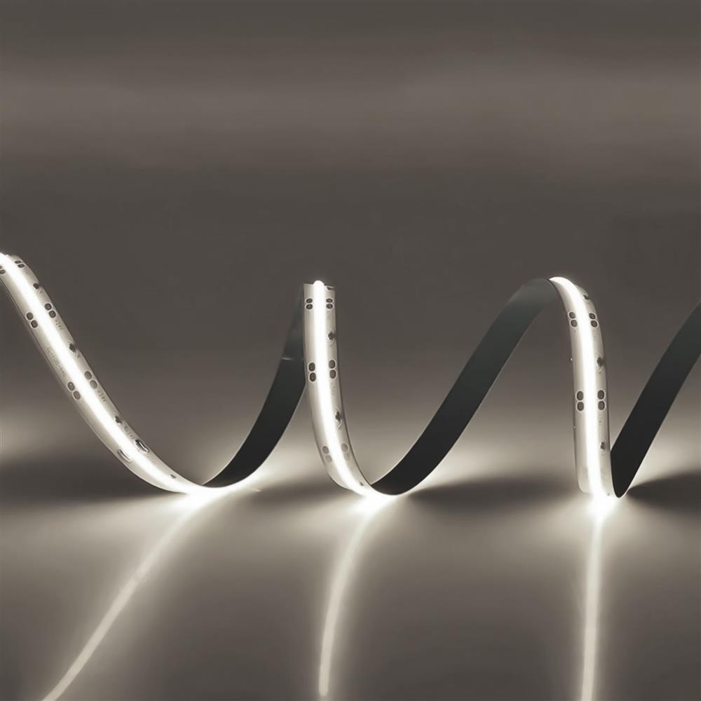Prišla je nova generacija LED trakov! LED trak, ki ga je enostavno oblikovati in upogniti, enakomerno oddaja svetlobo. Zahvaljujoč visoko zmogljivim LED diodam COB ni primeren samo za dekorativne namene, ampak je idealen tudi za osvetlitev delovnih površin in mavčnih plošč z enakomerno visoko svetilnostjo. Zahvaljujoč samolepilni hrbtni strani ga je mogoče hitro namestiti brez orodja. LED trak je združljiv z vsemi našimi aluminijastimi profili.
