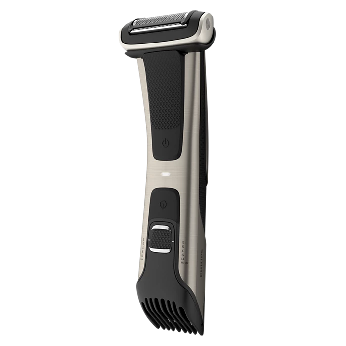 Philips Bodygroom Series 7000 BG7025/15 omogoča učinkovito in varno urejanje dlak po celem telesu z enim samim pripomočkom. Napredna zasnova združuje prirezovalnik in brivnik v enem, kar omogoča enostavno preklapljanje med prirezovanjem in britjem.