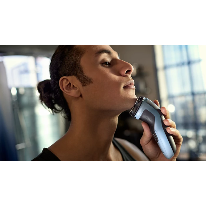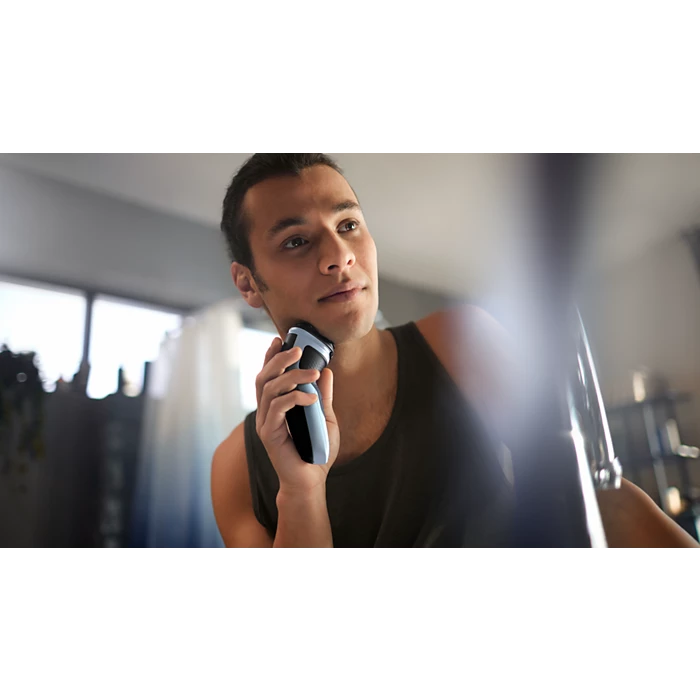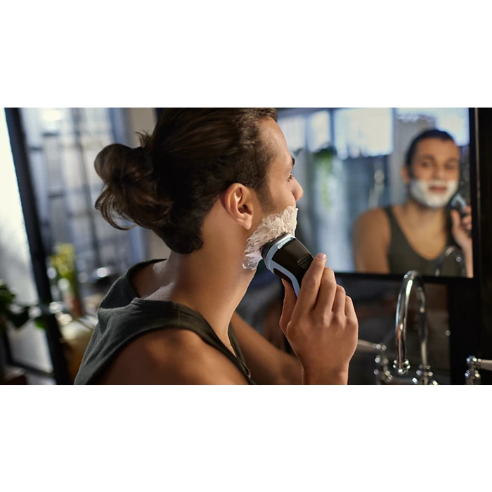 Spiranje pod tekočo vodo ali britje pod prho. Razred zaščite IPX7 za vodotesnost pomeni, da ga lahko za 30 minut varno potopite v vodo do globine enega metra.