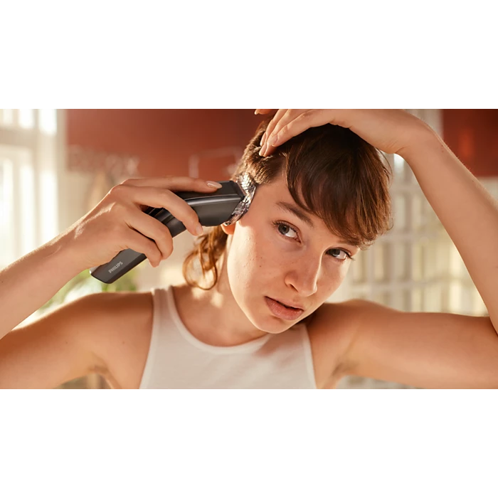 Strižnik Philips ima teksturiran ročaj za lažjo uporabo, da lahko lase strižete nadzorovano in udobno.