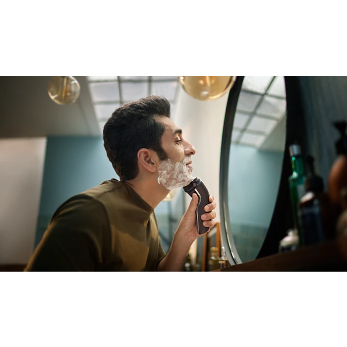 Električni brivnik Philips Shaver serije 3000 za mokro in suho britje zagotavlja udobno in čisto britje, tudi na občutljivi koži. Glave 5D Pivot & Flex, 27 samoostrilnih rezil PowerCut ter možnost mokrega in suhega britja zagotavljajo odlične in zanesljive rezultate vsakič.