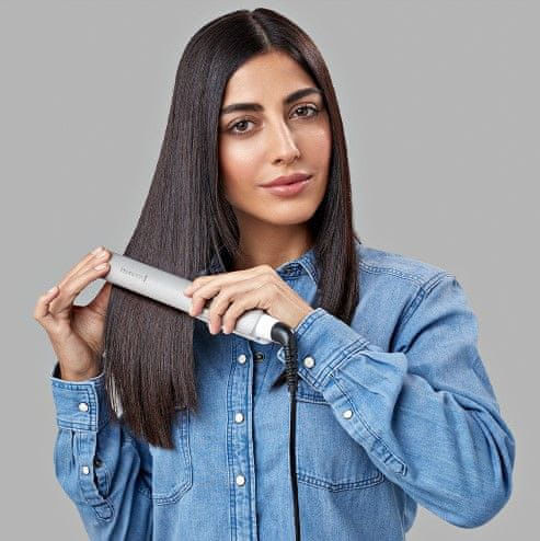 Ravnalnik omogoča izbiro med 9 temperaturnimi stopnjami od 150 °C do 230 °C, kar omogoča prilagoditev različnim tipom las – od tankih do gostih.