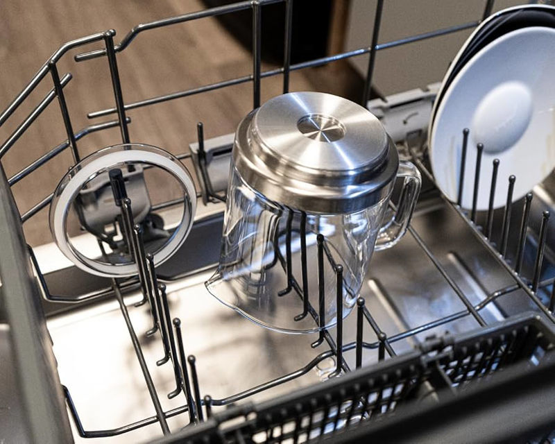 • Odstranljiva steklena posoda z ročajem in pokrovom za enostavno vlivanje in čiščenje