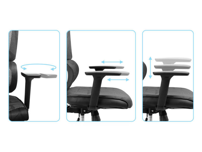 • Nastavitve: višina sedeža, globina sedeža, naklon naslonjala (4 položaji), 3D nastavljivi nasloni za roke in glavo