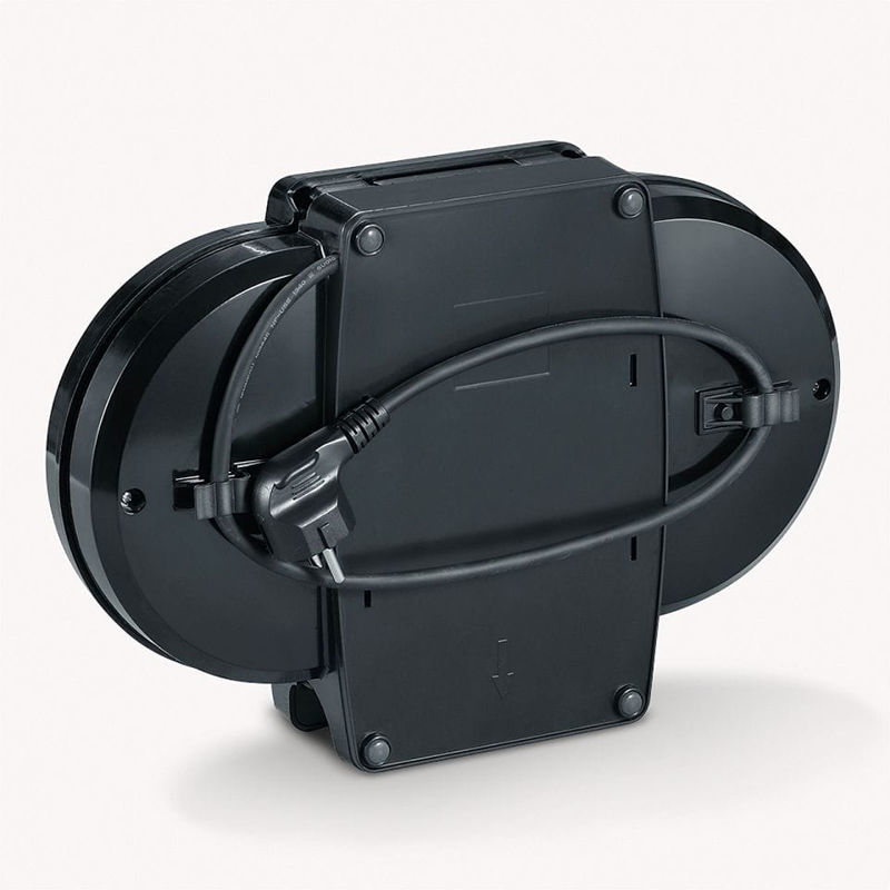 Severin WA 2106 je praktičen in enostaven aparat za peko vafljev, namenjen domačim sladkim in slanim zajtrkom ali prigrizkom. Dve okrogli plošči spečeta dva vaflja hkrati, kar prihrani čas in omogoča pripravo svežih vafljev za celotno družino. Naprava se hitro segreje s svojo 1200 W močjo, medtem ko nastavljiv termostat omogoča nadzor stopnje opečenosti po vašem okusu. Neljepljiva prevleka plošč preprečuje prijemanje testa in olajša čiščenje po uporabi. Kompaktna oblika z možnostjo vertikalnega shranjevanja in integriranim shranjevanjem kabla omogoča urejen prostor tudi v manjših kuhinjah. Indikatorske lučke vas obvestijo, kdaj je aparat pripravljen za uporabo in ko konča segrevanje.