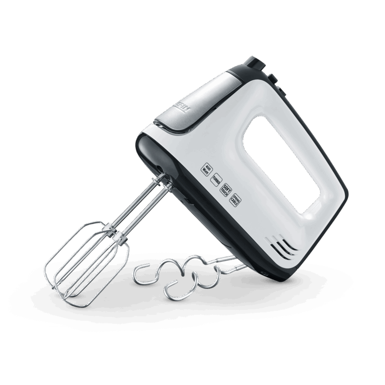 Severin HM 3830 je vsestranski in zanesljiv električni ročni mešalnik za vsakodnevno uporabo v kuhinji. Z močjo 400 W in 5 nastavitvami hitrosti lahko prilagodite delovanje glede na vrsto naloge – od nežnega stepanja jajc do gnetenja srednje težkih test. Dodaten Turbo gumb omogoča hitro povečanje moči, kadar je potrebna večja zmogljivost. Ergonomsko ohišje omogoča udoben oprijem in stabilno uporabo, medtem ko so metlice in kavne kljuke iz nerjavnega jekla trpežne in primerne za pogosto uporabo.