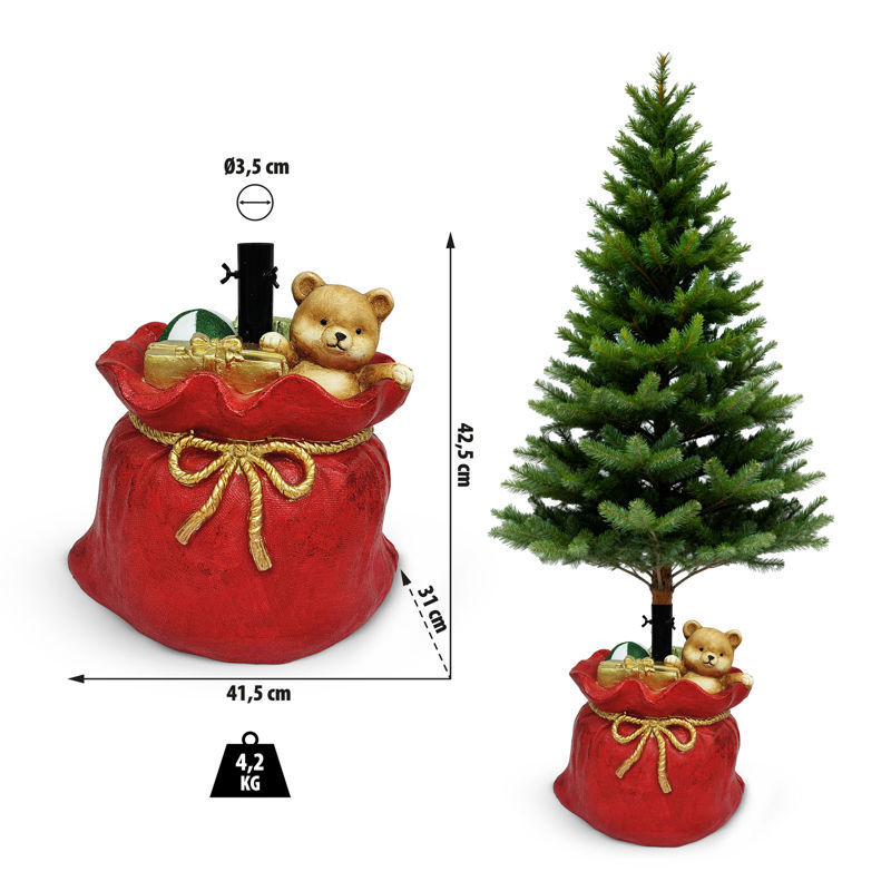 Prednosti izdelka: • Robustna in stabilna konstrukcija — podlaga, ki drži drevo ali dekoracijo stabilno. • “Kamniti” izgled — ustvari eleganten in naraven praznični ambient. • Kompaktne dimenzije (41,5 × 31 × 42,5 cm) — primeren tudi za manjše prostore. • Univerzalna uporaba — lahko služi kot stojalo za božično drevo ali kot samostojna dekoracija. • Enostavna montaža / postavitev brez zapletenih postopkov.