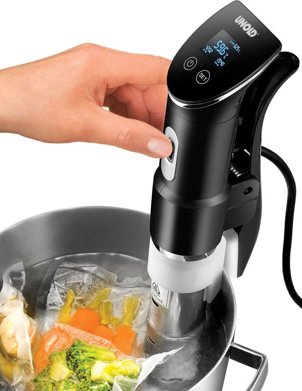 Odkrijte skrivnost popolno pripravljenih jedi z Unold Sous Vide Stick Time 58915. Ta palični sous vide kuhalnik omogoča počasno, natančno in enakomerno kuhanje hrane v vakuumsko zaprtih vrečkah pri natančno nadzorovani temperaturi. Rezultat so sočne in mehke jedi z ohranjenim okusom, barvo in hranilnimi vrednostmi.
